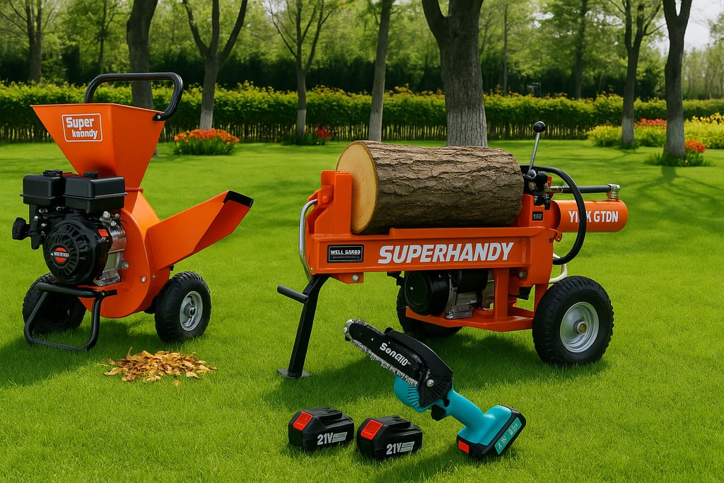 You can now rent a robust 20 Ton log splitter that is ideal for all your heavy-duty wood splitting requirements. We also provide a versatile 3" woodchipper/shredder/mulcher capable of effectively managing branches, leaves, and other yard waste, giving you clean and easy-to-handle debris. To complement these tools, consider our Seesii Battery Pruning Combo Kit, which features a high-performance Chainsaw, durable Shears, and an adjustable 15' pole for reaching hard-to-access branches. This comprehensive set is designed to enhance your gardening and landscaping activities, making them more efficient and enjoyable.